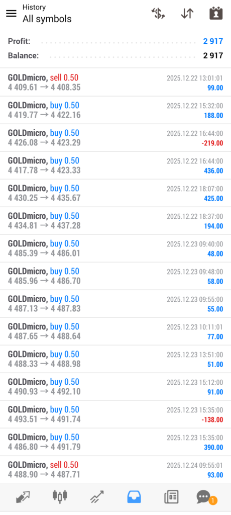 年末年始の週のため、ロンドン市場とNY市場が開場している日でも通常よりも流動性が低下しスプレッドが広がりやすいため、EA運用されている場合は稼働停止でよいでしょう。