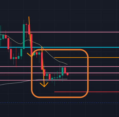 *写真では見づらくはありますが、上側にある黄色い線が20EMA, 下側にある白い線が200EMAです。