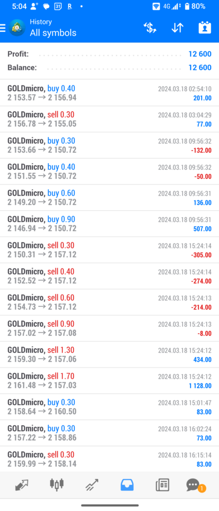 Gold順張り検証中EA 8万円運用: + 12,600 円