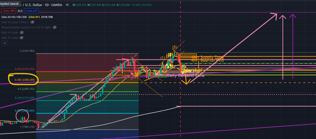 以上より、僕は今週はゴールドは今週5/31(金)までに$2257.345までは下降する可能性が高い、という見方でいます。