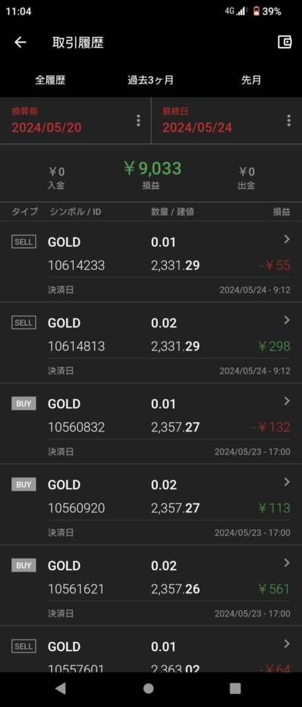 今週ゴールドは1時間足で見ると月曜午前は先週からの上昇トレンド📈、水曜夜まではディセトラ、水曜夜から金曜昼まで下降トレンド📉という流れでしたが、EAにしてみると7割トレンド相場でした。