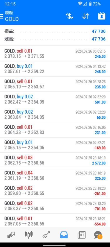 今週は8月2日金曜日の11:30am頃、ゴールドの強い上昇に呑まれ、デモ口座では最大ナンピンまで引っ張られました。