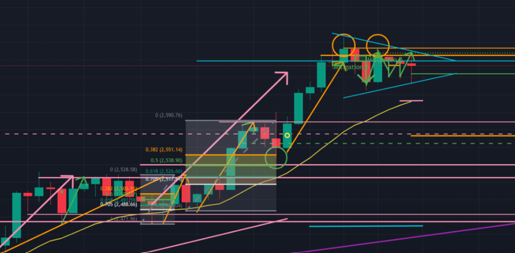 先週頭のゴールドの一週間の予想では、”ゴールドは月足上昇3波終点、日足上昇3波終点、4時間足上昇3波終点と見え方で揃っている点が多いため、僕はここからの下降のシナリオの優位性が高いと読んでいる ” と書いていました。