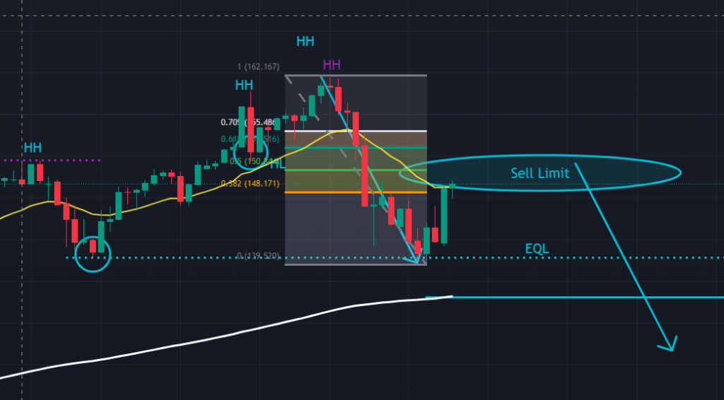 結果として、ドル円は大きな日足の上昇3波を日足の200日移動平均線にタッチするところまで伸ばしました。読み通りに進んできてくれています。