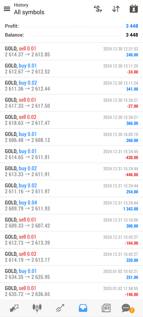 ゴールドは4時間足レベルの下降トレンドを終えた後の反転上昇で、火曜日からは強い上昇トレンドでしたが、10万円運用でも安全な稼働結果となりました🙂
