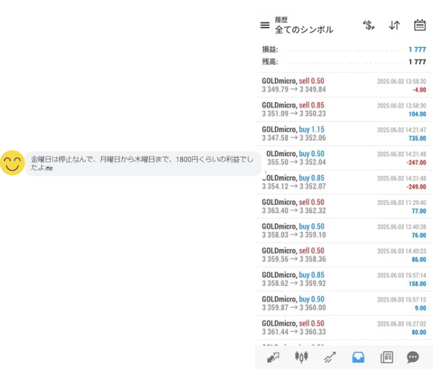 イースターマルス 5万円運用 0.5 lot (マイクロ口座): 1,777円の利益