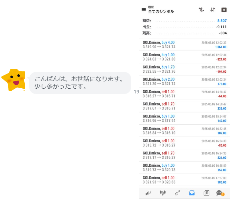 マルスは運用者さんの急増によりまるで責任感が増したように厳選エントリーが今の相場で効いており、今年入って以来というくらいに週利が平均週利よりも控えめで6月前半は完了となっております👀