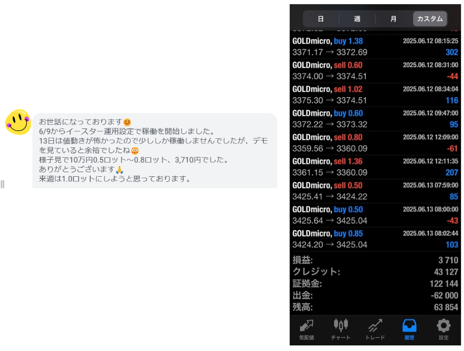 イースターマルス 10万円運用 0.7 lot (マイクロ口座):3,710円の利益