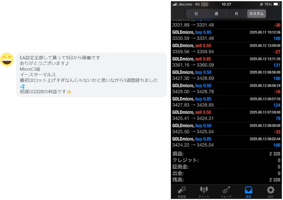イースターマルス 5万円運用 0.5 lot (マイクロ口座):2,328円の利益